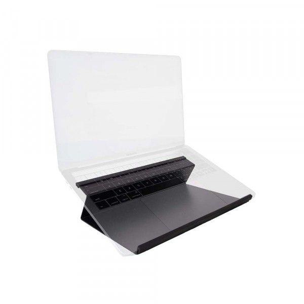 The Laptop Prop Is The Top Prop To Prop Your Laptop. Try to say that 3 times fast...You deserve the best in ergonomics when it comes to using a laptop in the workplace. This steel laptop prop will elevate your screen to a better height for your posture, reducing the hunch from using a laptop. The prop puts your laptop keyboard in a more suitable angle for your wrists when constantly typing. A steel laptop stand is perfect for people working in a home office. The stand has a grip on the base to keep it secure on work surfaces as well as your lap. We equipped the laptop prop with padded bumpers at the laptop contact points for added protection for your hardware. Open space below the stand promotes airflow to help keep the laptop battery cool. This steel laptop prop stand is best fit for laptops 13" and under.
